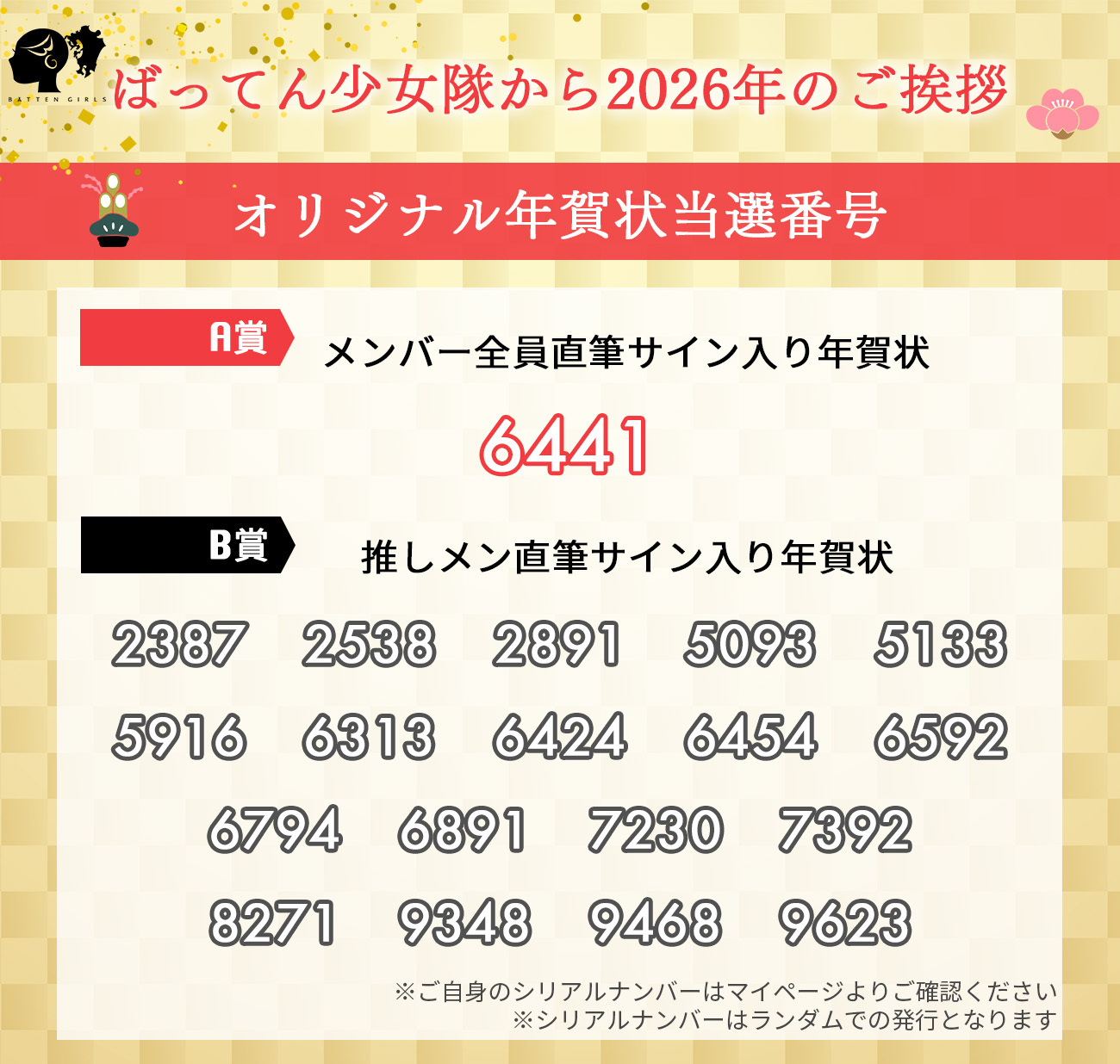 【1月7日(水)当選番号発表!】ばってん少女隊から2026年のご挨拶