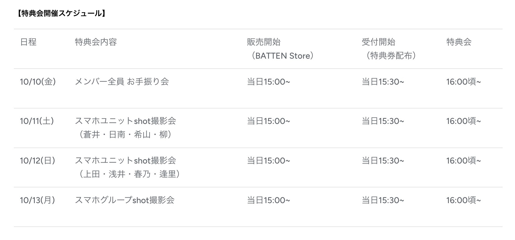 ・特典券をお持ちの方が1枚で1回、対象の特典会にご参加いただけます。