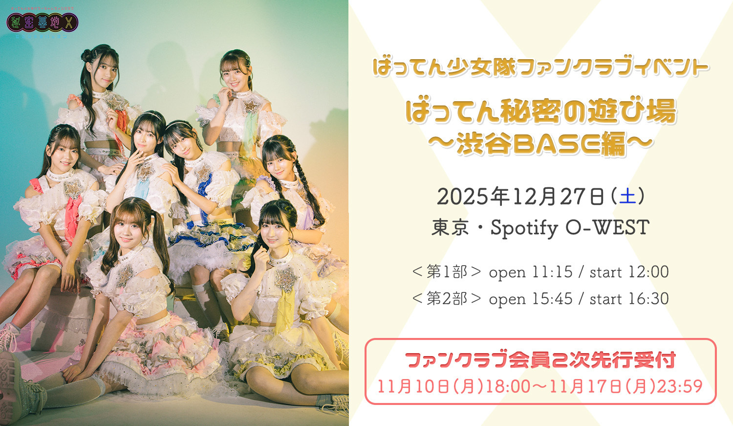 <秘密基地X>12/27(土)開催「ばってん秘密の遊び場〜渋谷BASE編〜」特典会対象商品販売中!